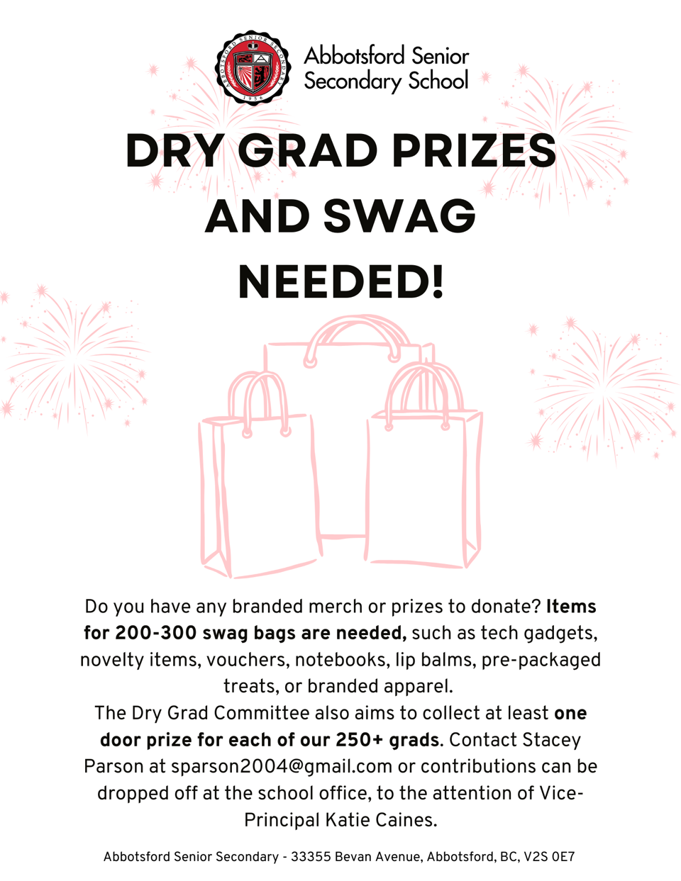 Breadcrumb Home Students Grads Dry Grad Sponsorship Interested in being a sponsor for our Dry Grad? Check out ways you can help to make Dry Grad a safe and inclusive evening for our graduating students! Document Dry Grad Sponsorship.jpeg Document Dry Grad Swag Bags.png